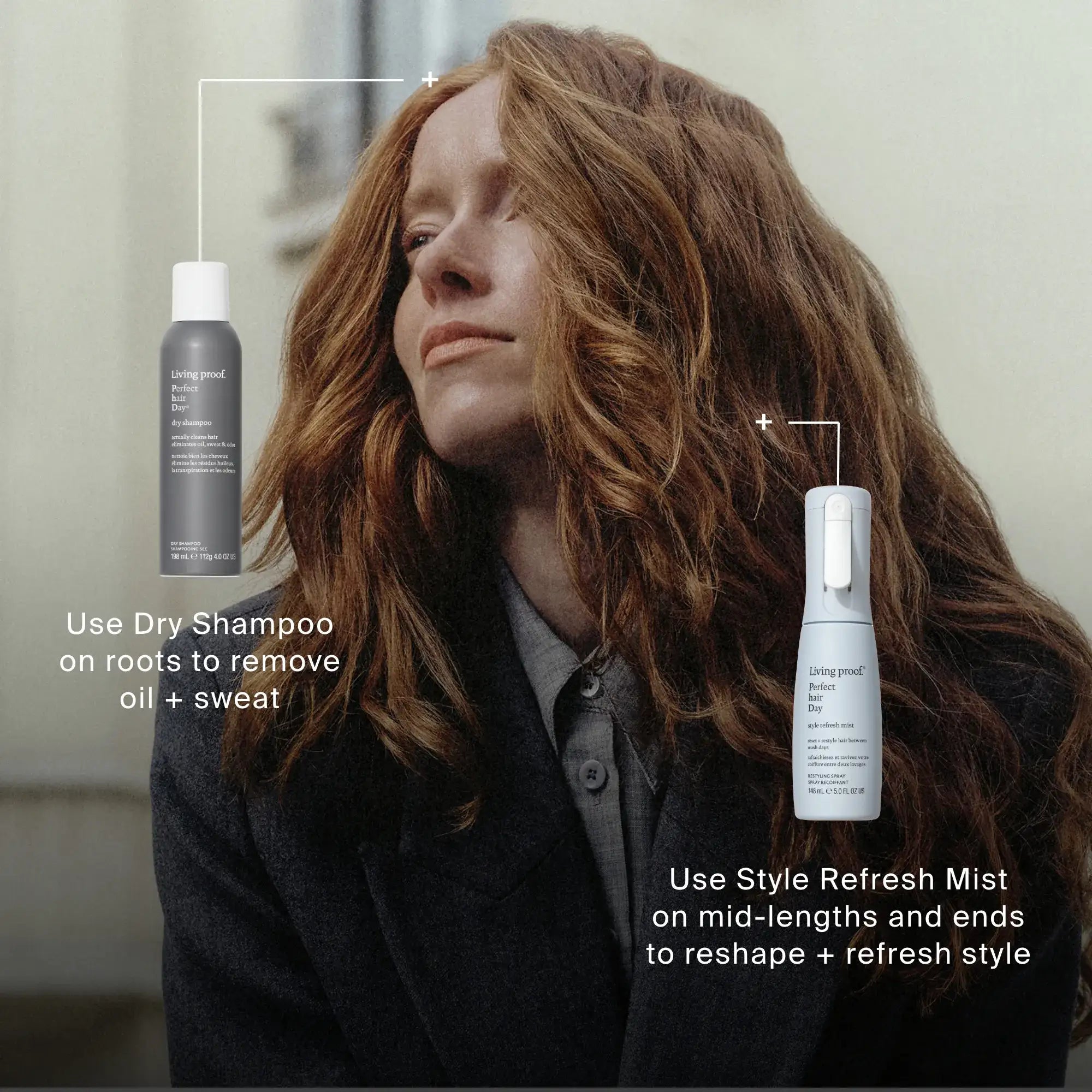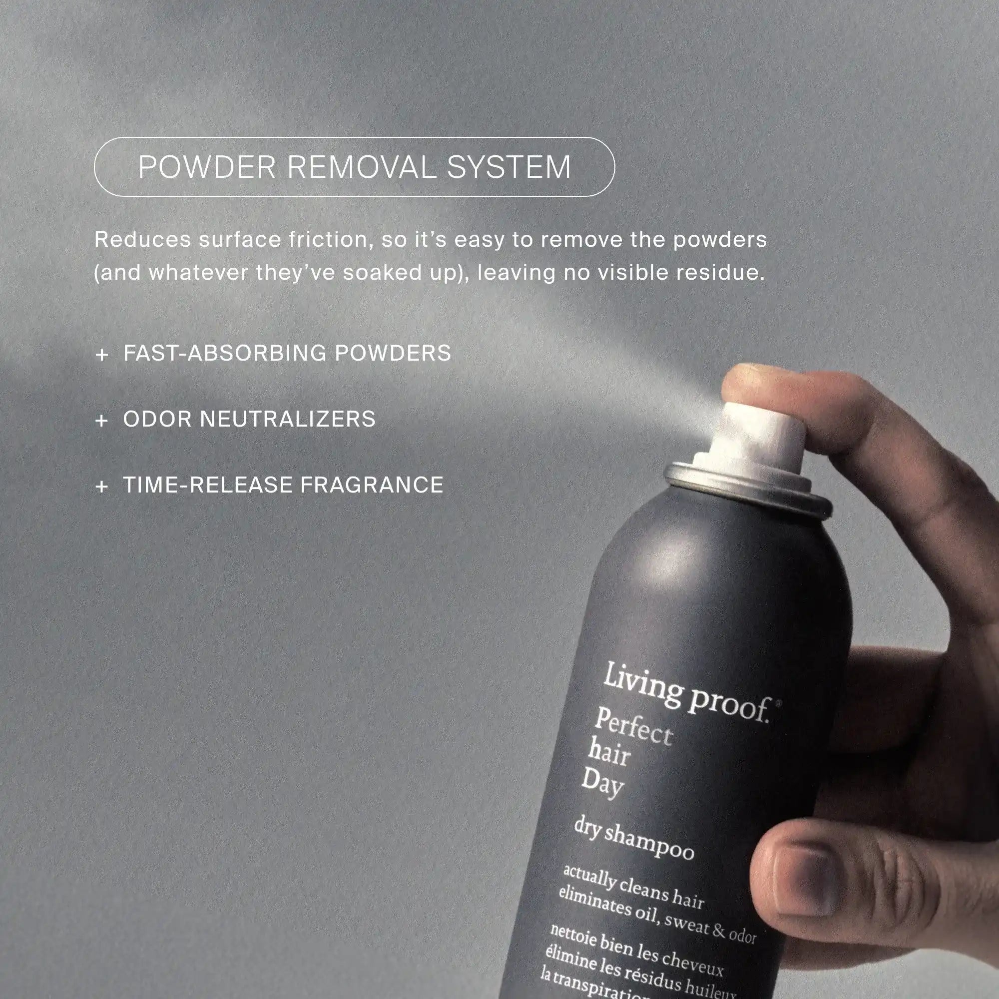 Many dry shampoos do not actually clean hair. They soak up oils, but in their place leave powders and residue. That’s not clean hair – that’s just dirty hair in disguise. In 2015, Living Proof set out to change that: We launched our Living Proof Perfect hair Day™ Dry Shampoo that’s formulated to actually clean hair, eliminating oil, sweat and odor. Since then, we’ve added Living Proof Perfect hair Day™ Advanced Clean Dry Shampoo to our offerings – it doesn’t just clean hair, it also cares for it as well, adding softness, manageability, and shine. It’s formulated to mimic the cleaning process and care benefits of a rinse-out shampoo, but without the shower. The cleaning process is simple: First, our new delivery system starts the cleaning process with a uniform application, allowing fast-absorbing powders to soak up oil, sweat, and odor. Then, the new powder removal system easily eliminates activated powders for a fresh start. Finally, our finishing and conditioning ingredient blend refreshes your scalp, balances sebum levels, and leaves hair conditioned, soft, shiny, and more manageable.